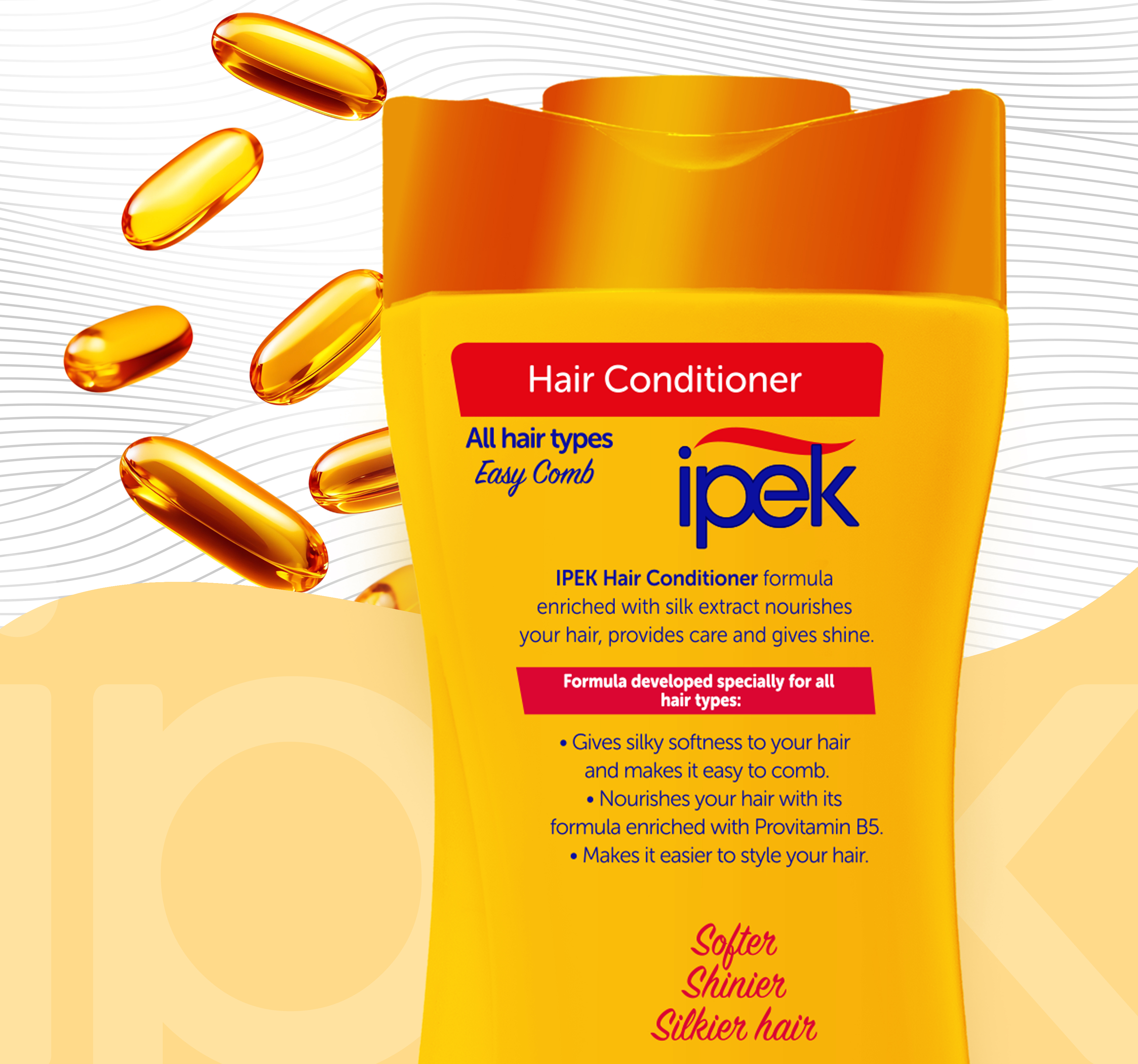 İpek Provitamin B5 Conditioner, enriched with Pure Silk Extract, nourishes, cares for, and adds shine to the hair.