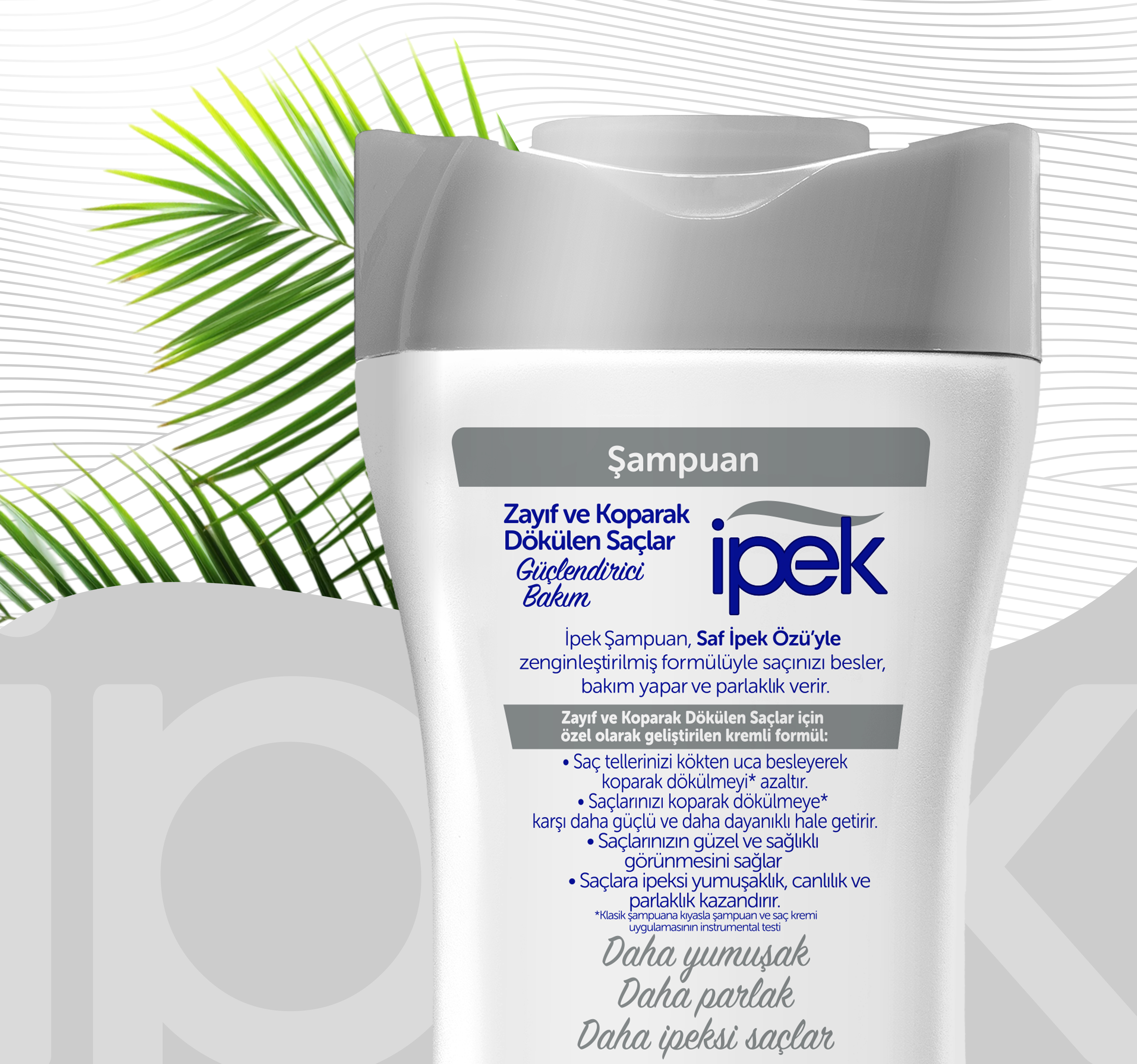 İpek Bitki Özleri Şampuan, Saf İpek Özüyle zenginleştirilmiş özel formülü sayesinde saçlarınızı besler, bakım yapar, doğal bir parlaklık ve ipeksi yumuşaklık kazandırır. Günlük kullanıma uygundur.